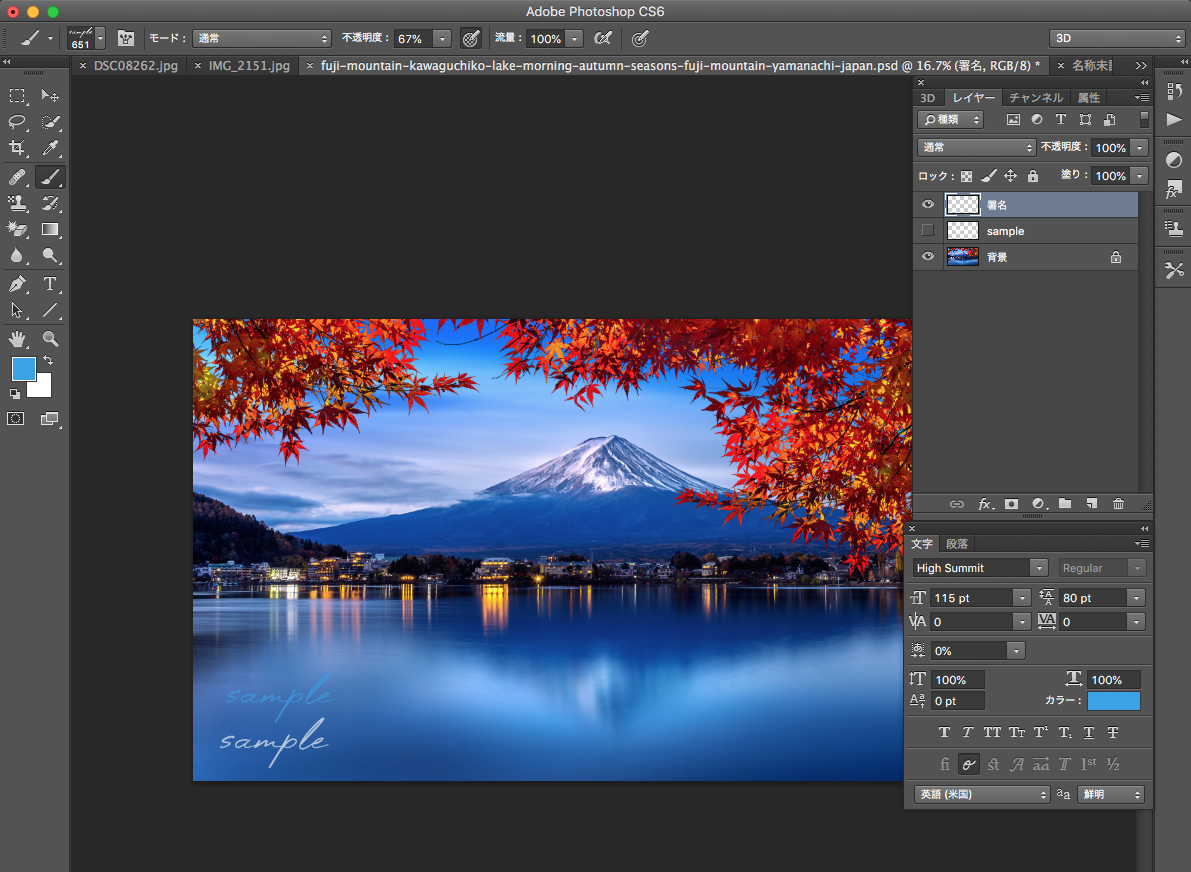 署名、サイン入れたい時はこんな感じになります。色、不透明度は画像に合わせて下さい